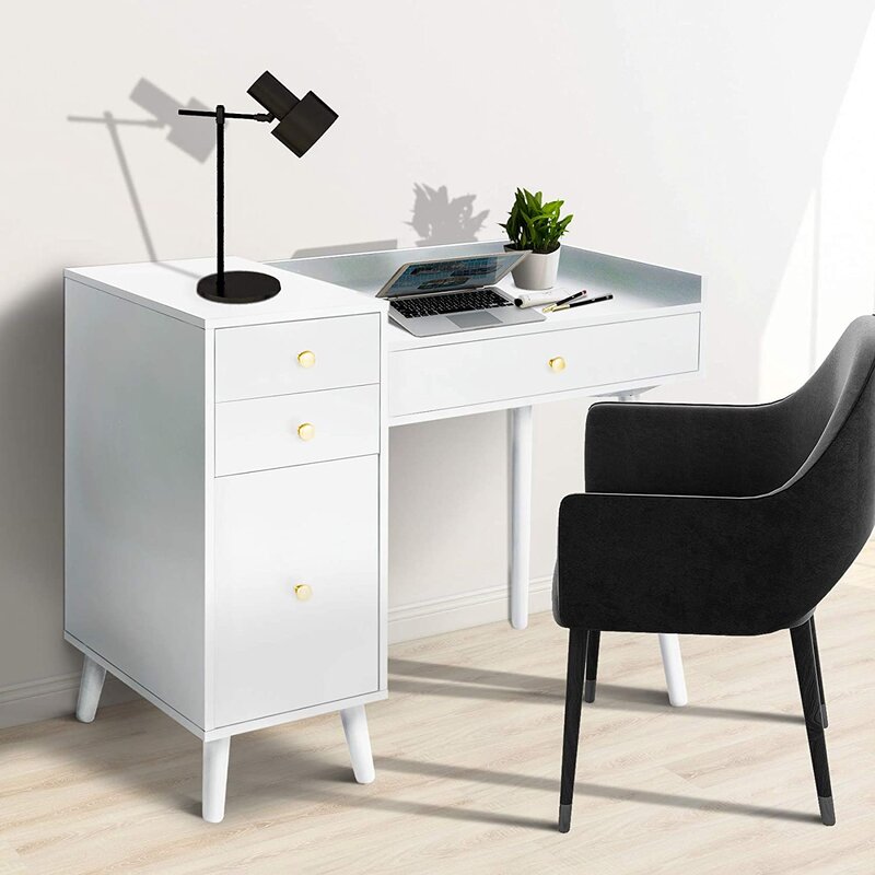 A classic and charming look makes this writing desk an excellent complement to your home office. Perfectly blend your home decoration and lifestyle. The writing desk features 3 large drawers and 1 cabinet for all items to store. The spacious desktop space and drawers are ideal for organizing your office and study supplies. It's made of High quality heavy plywood with premium laminate finish. Height 32 inches, Width 40 inches & Depth 18 inches. For customization contact 9999320028