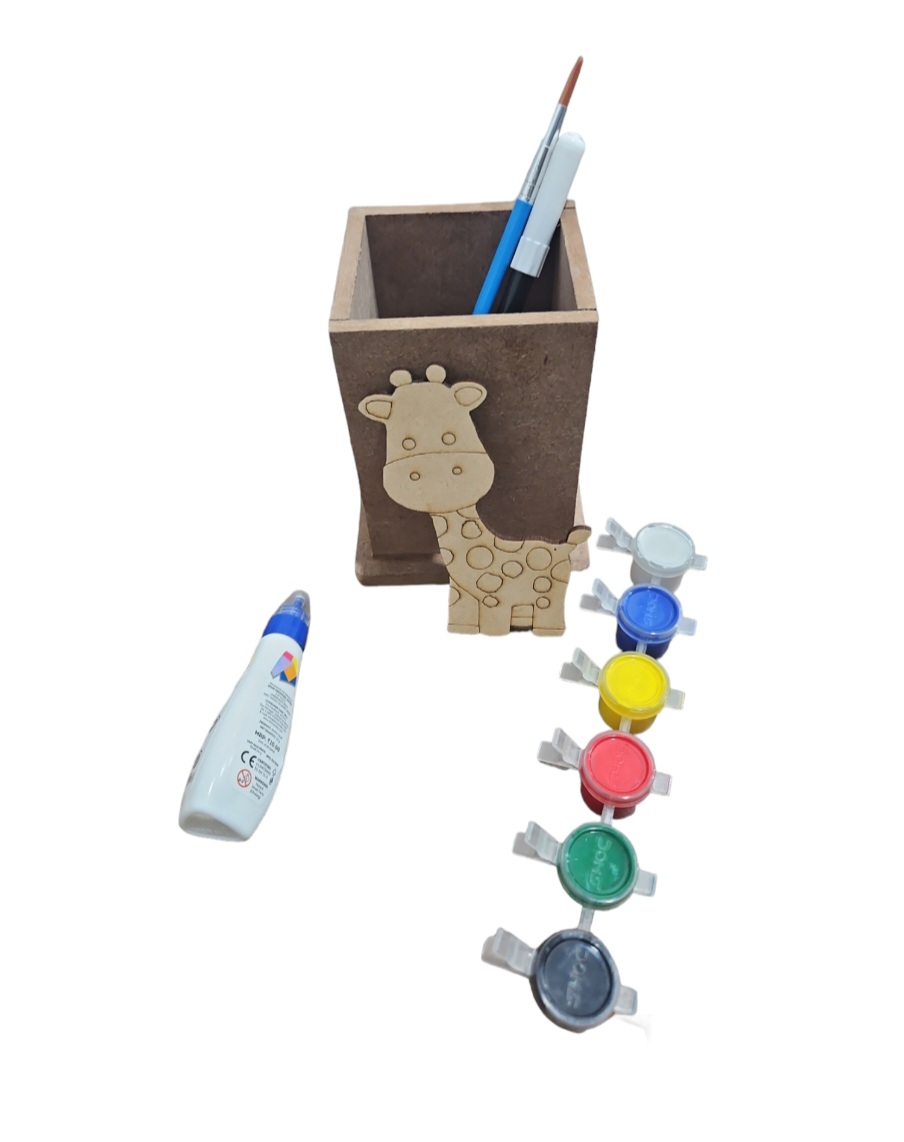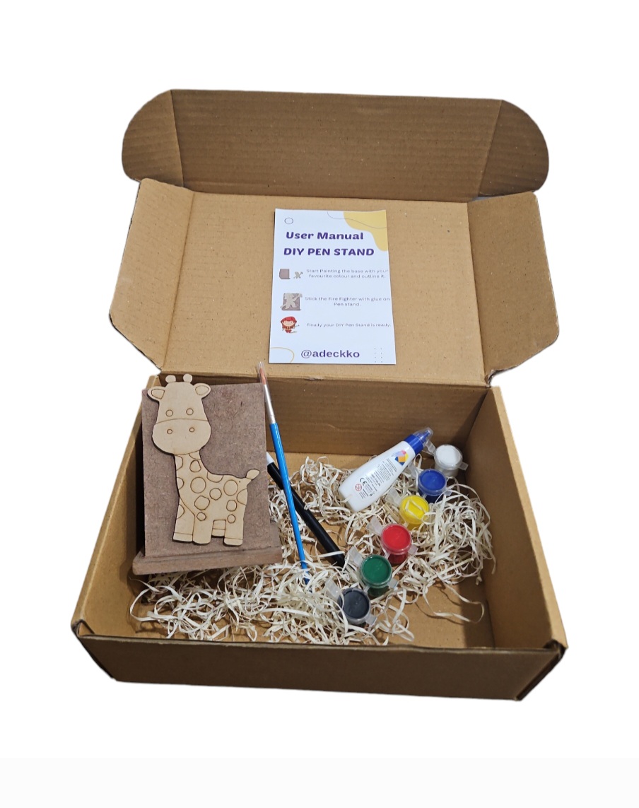 Adeckko DIY Pen Stand Giraffe Theme Coloring Kit. Unleash your creativity and organizational skills with the Adeckko DIY Pen Stand Giraffe Theme Coloring Kit. This unique and fun kit combines the joy of building with the therapeutic benefits of coloring, creating a personalized and functional pen stand that reflects your style. Giraffe -Themed Pen Stand & Cut Out : Pre Assembeld pen stand & Cutout. Coloring Markers: A set of vibrant, high-quality markers for coloring the pen stand pieces, allowing you to customize your creation. Instruction Sheet : Step-by-step instructions to guide. Customize your pen stand with your favorite colors and designs. Durable Materials : Made from high-quality MDF, durable materials to ensure your pen stand lasts.
