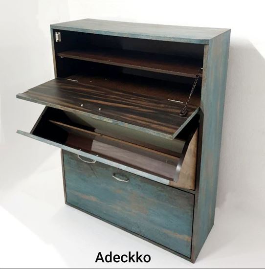 Keep your footwear well organized in the Adeckko Shoe Cabinet. This shoe rack is multi-functional . It has an elegant design that can enhance any decor. Made of High quality plywood with premium laminate finish. Shoe Rack Includes 2 Rotating Compartments and 1 Openable Shelf with two partitions ( ideal to keep shoes with boxes. Material - PLYWOOD + LAMINATE Dimensions - Height 49 inches Width 34 inches Depth 13 inches. Pre-assembled - NO Assembly Required. For customization contact 9999320028