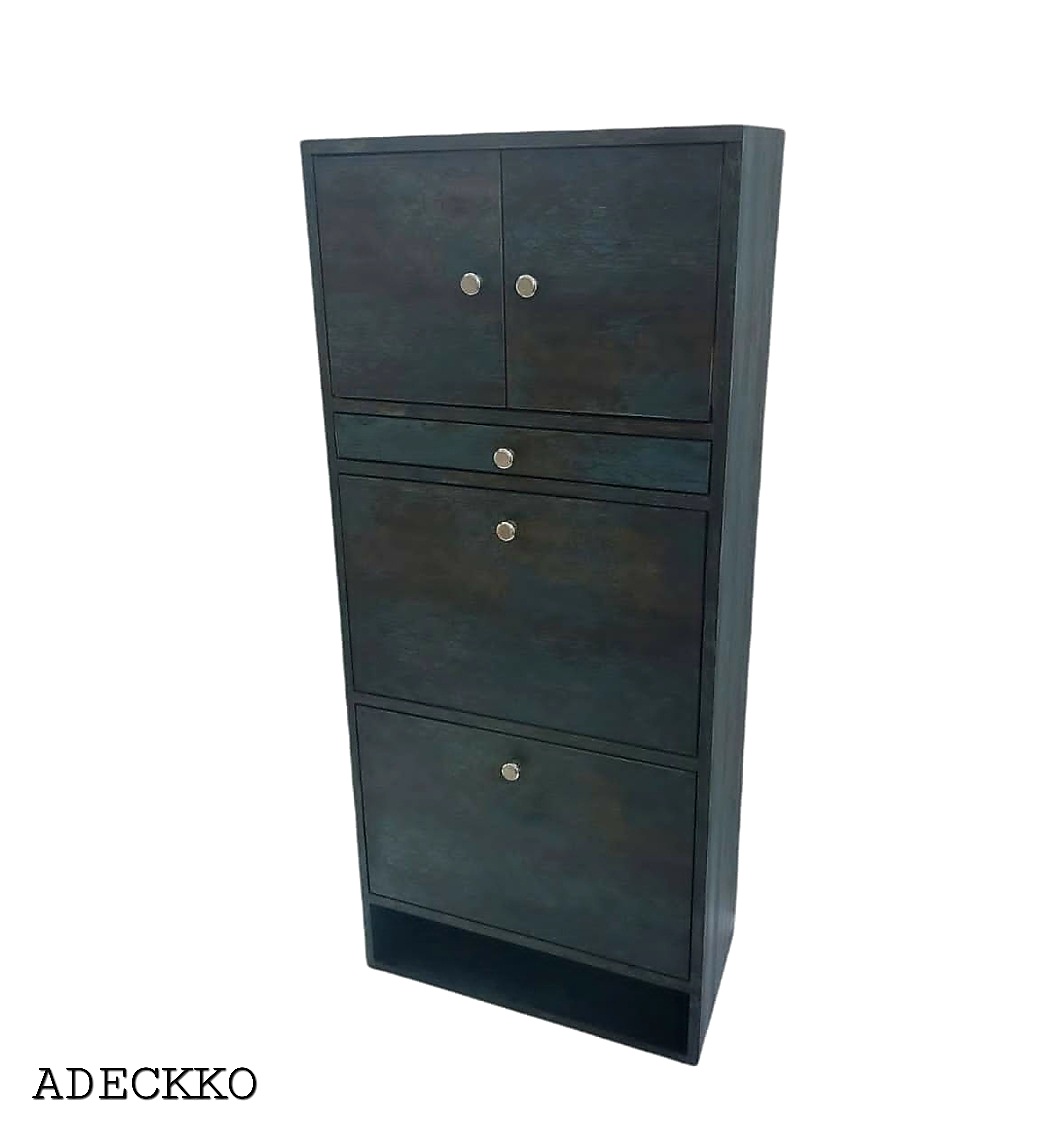 Organize your heels, sandals, sneakers, trainers, boots, work shoes and more with this cabinet. It will make finding your favourite pair of heels so much easier as well. Wooden Shoe Rack Includes 1 two door compartment, 2 rotating compartments & and one drawer with an open space at bottom. Made of High Quality Heavy Plywood with Premium Laminate Finish. Material - PLYWOOD + LAMINATE Dimensions - Height : 56 inches Width : 25 inches Depth : 13 inches. Pre-assembled - NO Assembly Required. For customization contact us at 9999320028