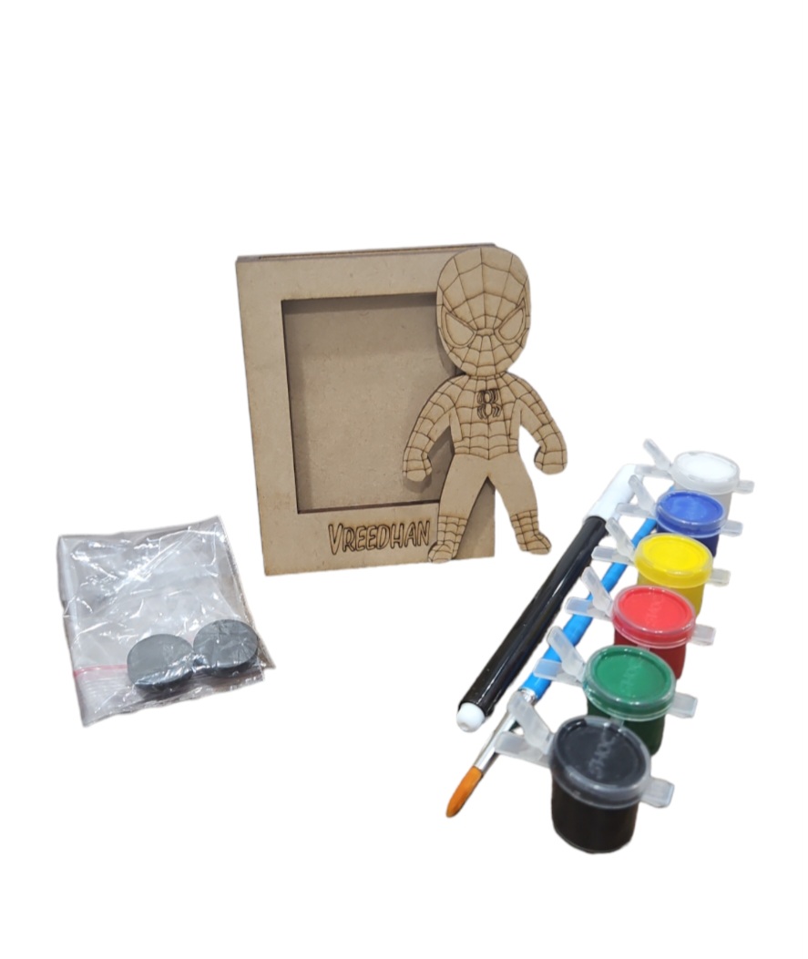 Spiderman Fridge Magnet with Photo Frame DIY Kit by ADECKKO. Swing into creativity with the Spiderman Fridge Magnet with Photo Frame DIY Kit by ADECKKO. This action-packed kit allows you to assemble a dynamic photo frame featuring everyone's favorite web-slinger, Spiderman. Perfect for superhero fans of all ages, this DIY kit adds a touch of Marvel magic to your fridge decor. Key Features:Superhero Design: Create a striking photo frame with Spiderman-themed elements. Magnetic Backing: Attach your heroic creation to any metal surface, such as a fridge or locker. Coloring Kit DIY Excitement: Engage in a fun and creative activity for both kids and adults. Personalized Display: Showcase your favorite photos with a unique superhero twist. Adeckko - Known for innovative and enjoyable DIY kits.Embrace your inner superhero with the Spiderman Fridge Magnet DIY Kit by ADECKKO, and make your memories truly spectacular.