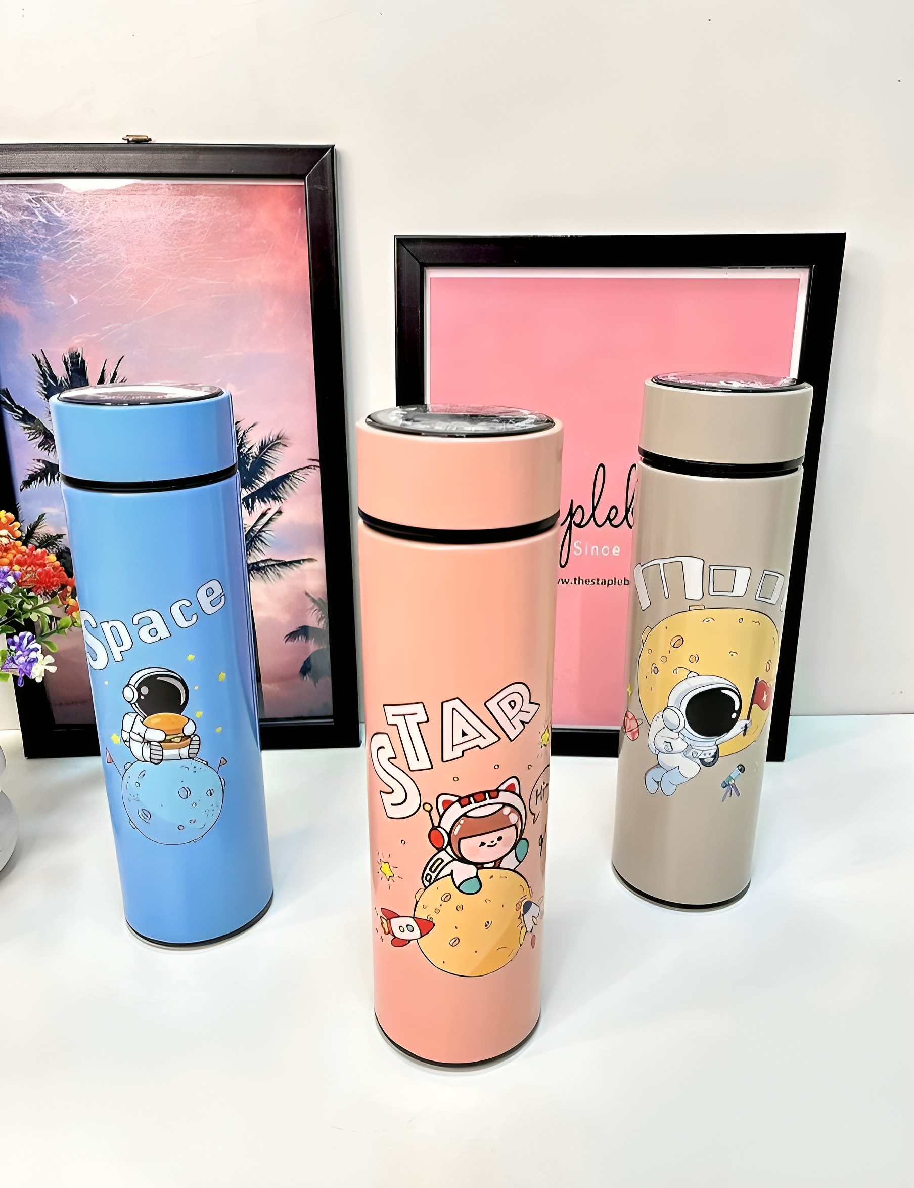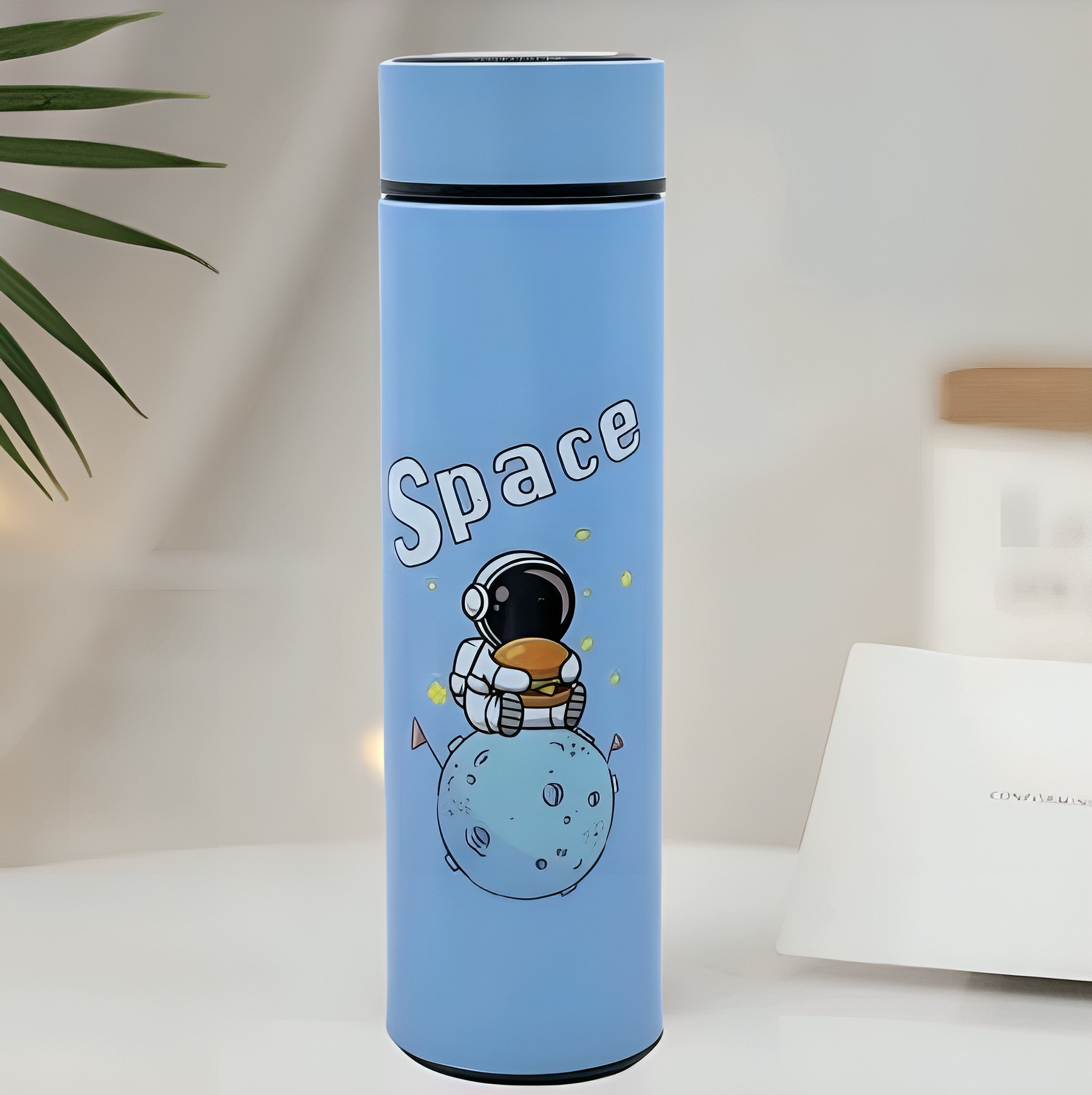 KIDS' SPILL PROOF WATER BOTTLE - The Kid's Water Bottle is specifically designed for smaller hands to use; It features easy to use parts and is made from high quality stainless steel, safe, and easy to clean materials. CREATIVE UNICORN-SHAPED DESIGN - Simple for kids to use and simple for parents to clean. Insulated, BPA Free, Food Grade, Anti Slip, Leak Proof. TEMPERATURE DISPLAY - Temperature Display - With HD LCD touch screen for prompt real-time water temperature display. Let you drink the water that is most suitable for temperature anytime, anywhere. TEA FILTER - Includes Tea Filter - Comes with stainless steel tea filter to separate the tea bag and water. Makes tea taste that much better! Sales Package – 01 Pc. Astronaut Space Temperature Water Bottle. Kindly note randomn colour will be shipped.
