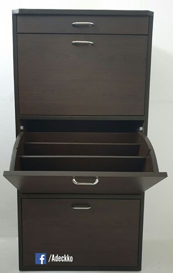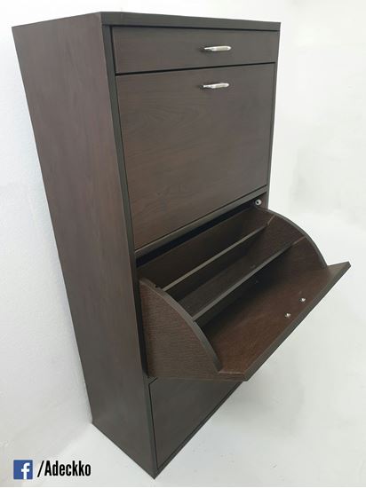 Keep your footwear well organized in the Adeckko Shoe Cabinet. This shoe rack is multi-functional and also has drawers to store other items. It has an elegant design that can enhance any decor. Made of High quality plywood with premium laminate finish. Material - PLYWOOD + LAMINATE Dimensions - Height : 51 inches Width. : 24 inches Depth. : 13 inches Pre-assembled - NO Assembly Required. For customization contact us at 9999320028