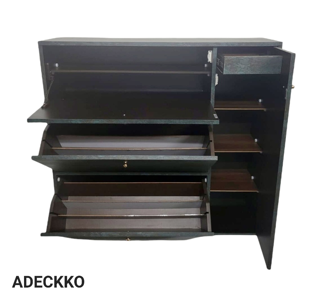 If you find yourself stepping on your shoes more often than you’re stepping into them, it’s time for a storage solution! This cabinet, sized to fit neatly into the entryway or mudroom, is a perfect pick. Almost 45 pair can easily accommodate. Its made of Plywood with premium Laminate Finish. It comes up with Two Rotating Compartments with one Pullout shelf at top & There is a single door at sides with detachable shelves with a small drawer inside. Material - PLYWOOD + LAMINATE Dimensions - Height 45 inches Width 48 inches Depth 13 inches Pre-assembled - NO Assembly Required. For customization contact 9999320028