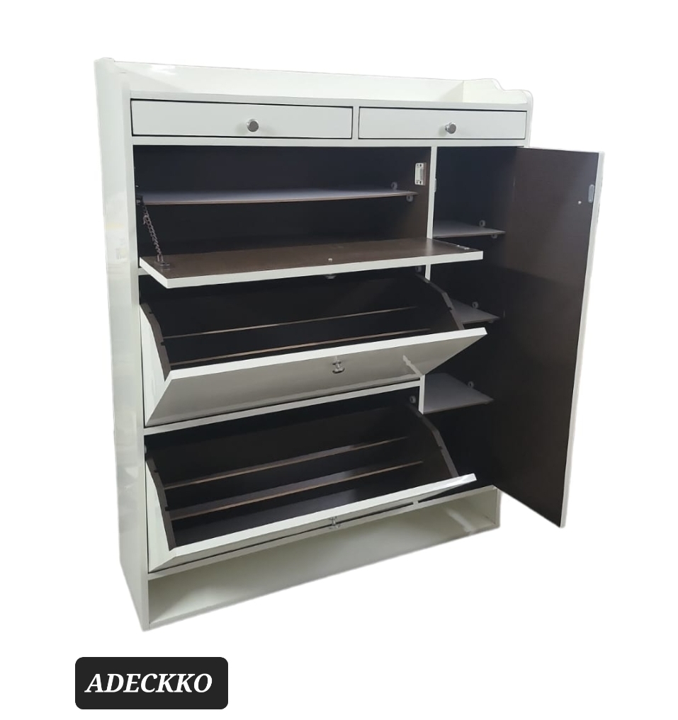 If you find yourself stepping on your shoes more often than you’re stepping into them, it’s time for a storage solution! This cabinet, sized to fit neatly into the entryway or mudroom, is a perfect pick. Almost 50 pair can easily accommodate. Its made of Plywood with premium Laminate Finish. It comes up with Two Rotating Compartments with one Pullout shelf at top & There is a single door at sides with detachable shelves with two storage drawers. There is open space at bottom to keep regular footwear Material - PLYWOOD + LAMINATE Dimensions - Height : 56 inches Width : 48 inches Depth : 13 inches Pre-assembled - NO Assembly Required. For customization contact 9999320028