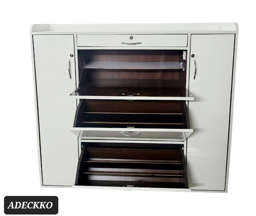 If you find yourself stepping on your shoes more often than you’re stepping into them, it’s time for a storage solution! This cabinet, sized to fit neatly into the entryway or mudroom, is a perfect pick. Almost 60 pair can easily accommodate. Its made of Plywood with premium Laminate Finish. It comes up with Two Rotating Compartments with one Pullout shelf at top & There is a single door at both sides with detachable shelves with a small drawer. Material - PLYWOOD + LAMINATE Dimensions - Height : 48 inches Width : 58 inches Depth : 13 inches Pre-assembled - NO Assembly Required. For customization contact 9999320028