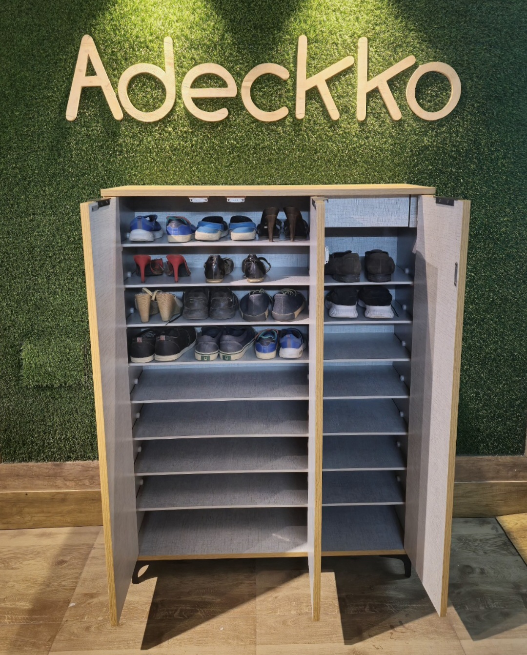 Keep your space organized and clutter-free with Adeckko's 3-Door Shoe Rack. Designed to accommodate up to 35 pairs, this sleek storage solution offers hidden drawer and detachable shelves for versatile organization. Crafted from high-quality plywood and finished with a premium teak laminate, it adds a touch of elegance to any space. Perfect for those who value both design and practicality. Upgrade your home with Adeckko today! Height 48 inches Width 38 inches Depth 13 inches For customisation contact +91 9999320028