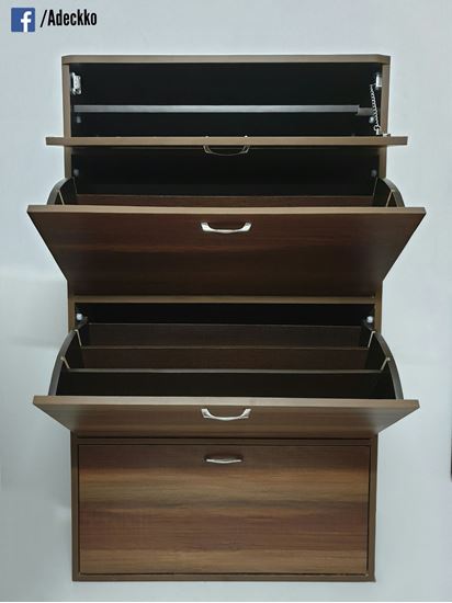 Keep your footwear well organized in the Adeckko Shoe Cabinet. This shoe rack is multi-functional . It has an elegant design that can enhance any decor. Made of High quality plywood with premium laminate finish. Material - PLYWOOD + LAMINATE Dimensions - Height : 60 inches Width. : 36 inches Depth. : 13 inches Pre-assembled - NO Assembly Required. For customization contact us at 9999320028