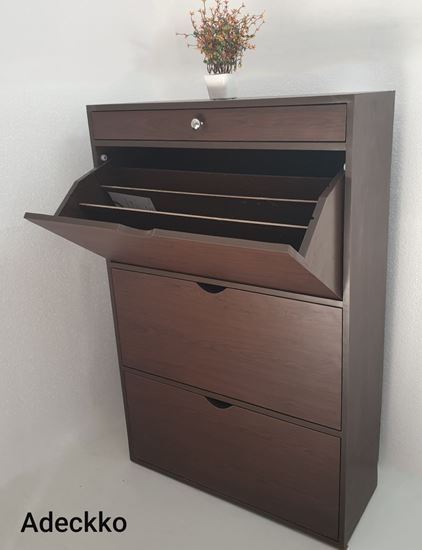 Organise your heels, sandals, sneakers, trainers, boots, work shoes and more with this cabinet. It will make finding your favourite pair of heels so much easier as well. Wooden Shoe Rack Includes 3 layers with 3 racks and one drawer. Each layer has 3 shoe racks with 3 slots on both sides and 2 movable panel, You can adjust the panel according to your needs. Max stoarge 40 Pair of Shoes. Made of High Quality Heavy Plywood with Premium Laminate Finish. Material - PLYWOOD + LAMINATE Dimesnions - Height : 54 inches Width : 36 inches Depth : 13 inches. Pre-assembled - NO Assembly Required. For customization contact us at 9999320028