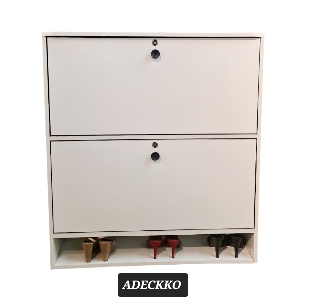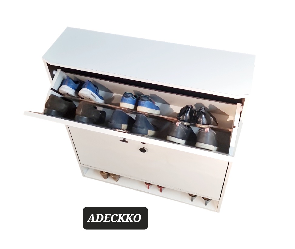 Keep your shoes neatly organized while keeping your room style sleek and modern with their Double Door 12 Pair Shoe Storage Cabinet. It has two rotating compartmens and open space at bottom for regular wear shoes. It's made of High quality heavy plywood with premium laminate finish. Material - PLYWOOD + LAMINATE Dimensions - Height 40 inches Width 30 inches Depth 10 inches. Pre-assembled - NO Assembly Required. For customization contact 9999320028