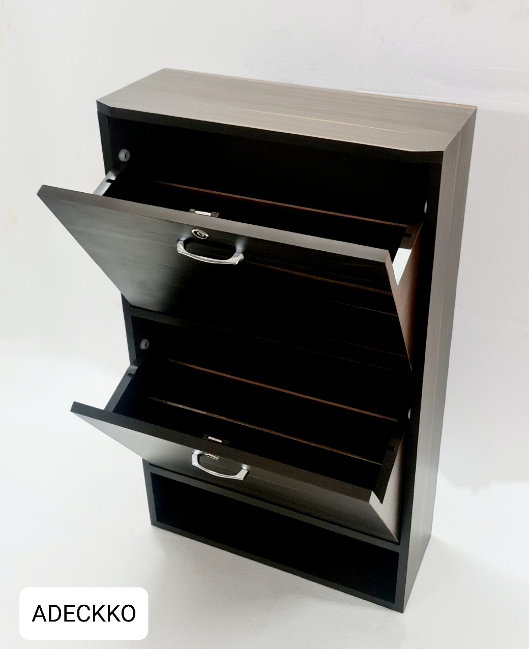 Organize your heels, sandals, sneakers, trainers, boots, work shoes and more with this cabinet. It will make finding your favourite pair of heels so much easier as well. Wooden Shoe Rack Includes 2 compartments with 2 rows with open space to keep regular wear shoes. You can adjust the panel according to your needs. Made of High Quality Heavy Plywood with Premium Laminate Finish. Material - PLYWOOD + LAMINATE Height : 40 inches Width : 24 inches Depth : 13 inches. Pre-assembled - NO Assembly Required. For customization contact us at 9999320028