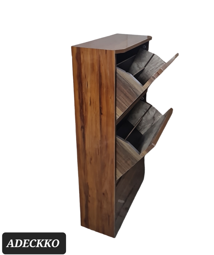 Keep your footwear well organized in the Adeckko Shoe Cabinet . It has an elegant design that can enhance any decor. Made of High Quality Plywood with premium laminate finish. Material - PLYWOOD + LAMINATE Dimensions - Height : 48 inches Width. : 24 inches Depth. : 10 inches Pre-assembled - NO Assembly Required. For customization contact us at 9999320028