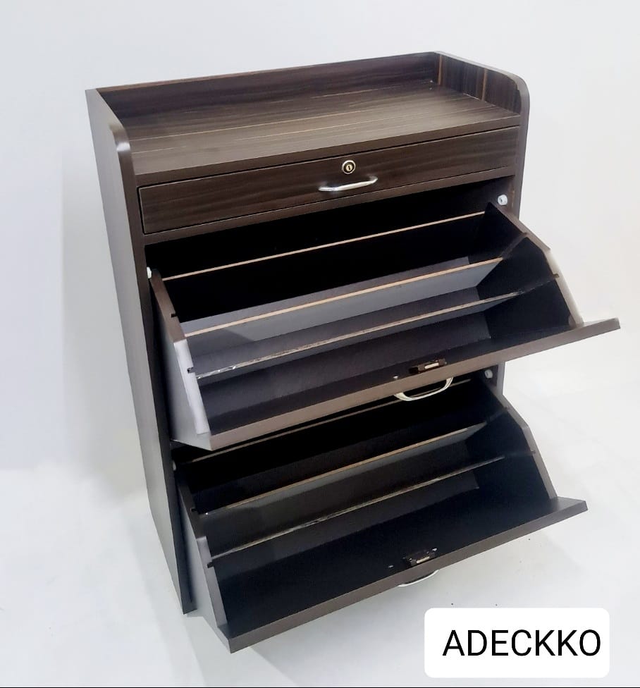 Organize your heels, sandals, sneakers, trainers, boots, work shoes and more with this cabinet. It will make finding your favourite pair of heels so much easier as well. Wooden Shoe Rack Includes 2 layers with 3 rows and one drawer. Each layer has 3 shoe racks with 3 slots on both sides and 2 movable panel, You can adjust the panel according to your needs. Max storage 18 Pair of Shoes. Made of High Quality Heavy Plywood with Premium Laminate Finish. Material - PLYWOOD + LAMINATE Dimensions - Height : 40 inches Width : 25 inches Depth : 13 inches Pre-assembled - NO Assembly Required. For customization contact us at 9999320028
