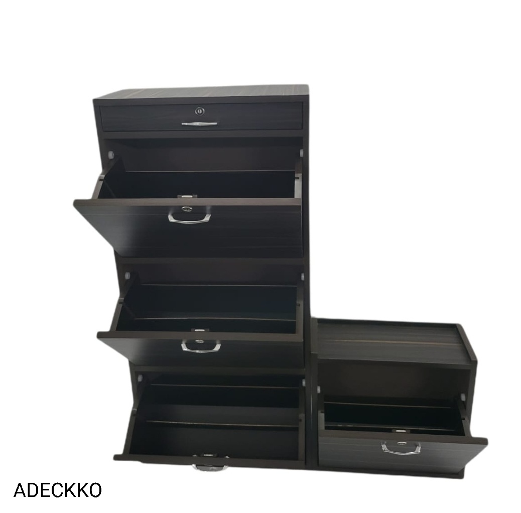 This shoe storage cabinet creates a clutter-free space, organizes all your footwear in one place, and will protect your footwear, keeping them looking new. It has 3 Compartments and two rows in each compartment, with Bench with storage. It's made of High Quality heavy plywood and premium laminate finish. Material - PLYWOOD + LAMINATE Dimensions - Height 50 inches Width 24 inches Depth 10 inches. Bench Height 17 inches, Width 20 inches Depth 10 inches. Pre-assembled - NO Assembly Required. For customisation contact 9999320028