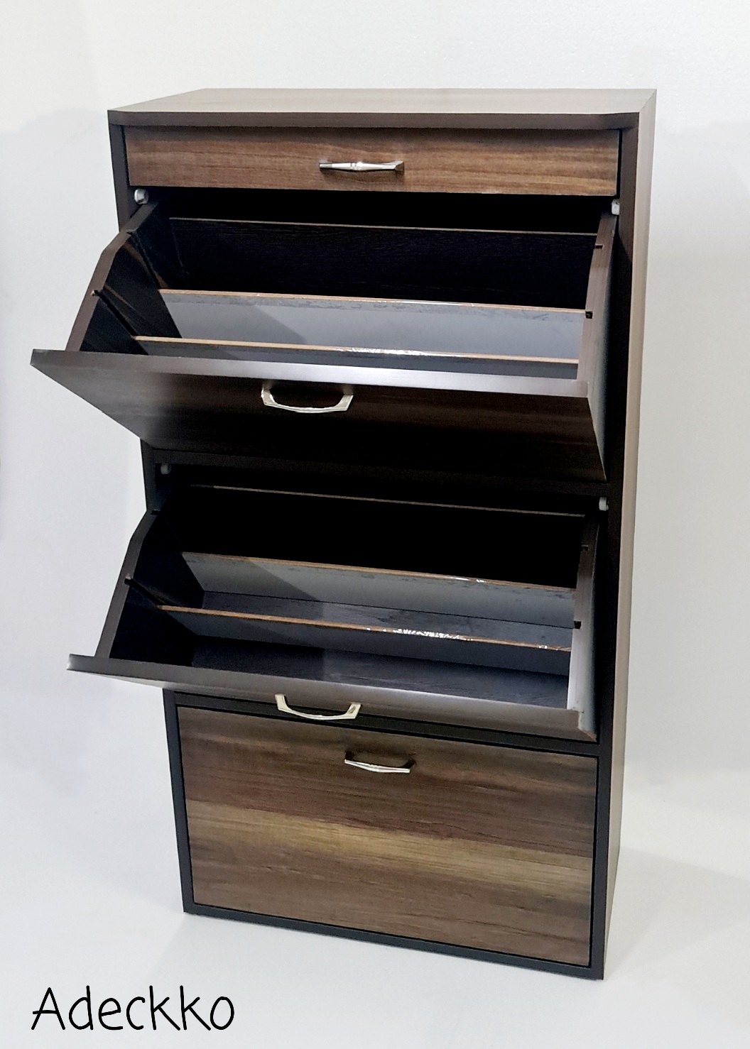 Organize your heels, sandals, sneakers, trainers, boots, work shoes and more with this cabinet. It will make finding your favourite pair of heels so much easier as well. Wooden Shoe Rack Includes 3 layers with 3 racks and one drawer. Each layer has 3 shoe racks with 3 slots on both sides and 2 movable panel, You can adjust the panel according to your needs. Max storage 24 Pair of Shoes. Made of High Quality Heavy Plywood with Premium Laminate Finish. Material - PLYWOOD + LAMINATE Dimensions - Height : 50 inches Width : 24 inches Depth : 13 inches. Pre-assembled - NO Assembly Required. For customization contact us at 9999320028.