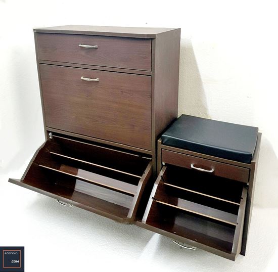 If you love organization, you’ll love shoe storage cabinet. Perfect for traditional inspired aesthetics, this piece has an overall shoe capacity of 24 pair of shoes. It is crafted from heavy plywood, in a Dark Walnut shade, and features two compartments and a drawer. With Bench with an extra drawer. This shoe rack is Pre- Assembled and No Assembly Required Material - PLYWOOD + LAMINATE Dimensions - Height 38 Inches Width 30 Inches Depth 13 Inches . Bench -Height 20 Inches Width 18 Inches Depth 13 Inches. Pre-assembled - NO Assembly Required. For customization contact 9999320028