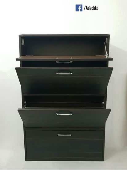 Keep your footwear well organized in the Adeckko Shoe Cabinet. It has an elegant design that can enhance any decor. Made of High quality plywood with premium laminate finish. Material - PLYWOOD + LAMINATE Dimensions - Height : 54 inches Width. : 36 inches Depth. : 9 inches Pre-assembled - NO Assembly Required. For customization contact us at 9999320028