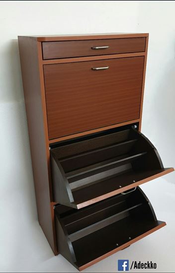 Organize your heels, sandals, sneakers, trainers, boots, work shoes and more with this cabinet. It will make finding your favourite pair of heels so much easier as well.Wooden Shoe Rack Includes 3 layers with 3 racks and one drawer.Each layer has 3 shoe racks with 3 slots on both sides and 2 movable panel, You can adjust the panel according to your needs.Max storage 27 Pair of Shoes.Made of High Quality Heavy Plywood with Premium Laminate Finish. Material - PLYWOOD + LAMINATE Dimensions - Height : 51 inches Width : 27 inches Depth : 13 inches Pre-assembled - NO Assembly Required. For customization contact us at 9999320028
