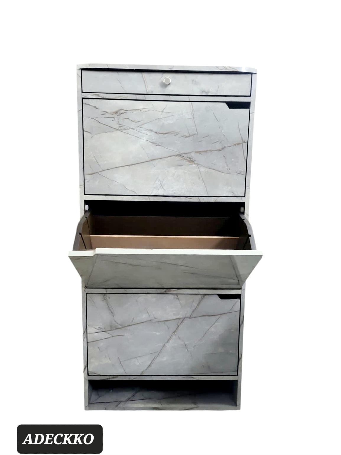 Organize your heels, sandals, sneakers, trainers, boots, work shoes and more with this cabinet. It will make finding your favourite pair of heels so much easier as well. Wooden Shoe Rack Includes 3 layers with 3 racks and one drawer. Each layer has 3 shoe racks with 3 slots on both sides & open space at bottom to keep regular footwear. Max storage 30 Pair of Shoes. Made of High Quality Heavy Plywood with Premium Laminate Finish. Material - PLYWOOD + LAMINATE Dimensions - Height : 56 inches Width : 27 inches Depth : 13 inches Pre-assembled - NO Assembly Required. For customization contact us at 9999320028