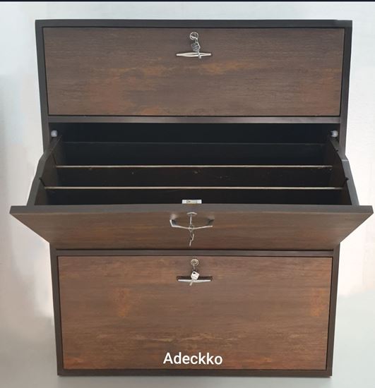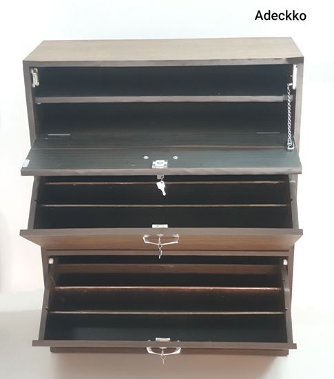 Organize your heels, sandals, sneakers, trainers, boots, work shoes and more with this cabinet. It will make finding your favourite pair of heels so much easier as well. Wooden Shoe Rack Includes 3 Compartments with locks. This has 2 Rotating Compartments & One Compartment for Boots on top.. Max storage 30 Pair of Shoes. Made of High Quality Plywood with Premium Laminate Finish. Material - PLYWOOD + LAMINATE Dimensions - Height : 45 inches Width : 36 inches Depth : 13 inches. Pre-assembled - NO Assembly Required. For customization contact us at 9999320028