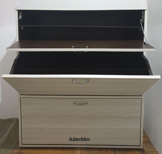 Organize your heels, sandals, sneakers, trainers, boots, work shoes and more with this cabinet. It will make finding your favourite pair of heels so much easier as well.Wooden Shoe Rack Includes 3 Compartments.This has 2 Rotating Compartments & One Compartment for Boots on top..Max storage 35 Pair of Shoes.Made of High Quality Plywood with Premium Laminate Finish. Material - PLYWOOD + LAMINATE Dimensions - Height : 45 inches Width : 40 inches Depth : 13 inches Pre-assembled - NO Assembly Required. For customization contact us at 9999320028