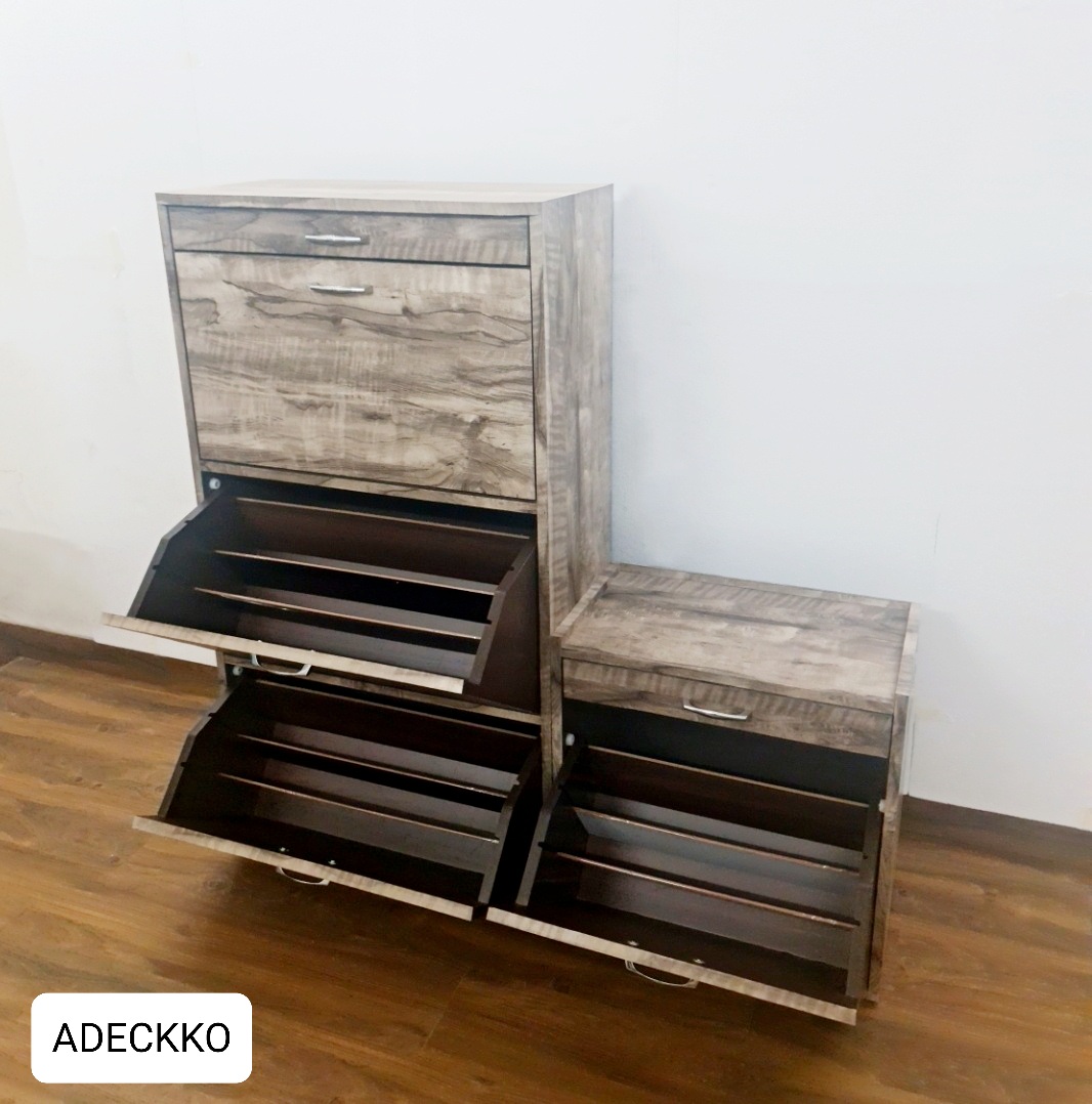 Organize your heels, sandals, sneakers, trainers, boots, work shoes and more with this cabinet. It will make finding your favourite pair of heels so much easier as well. Wooden Shoe Rack Includes 3 layers with 3 racks and one drawer. Each layer has 3 shoe racks with 3 slots on both sides and 2 movable panel, You can adjust the panel according to your needs. Max storage 36 Pair of Shoes. Made of High Quality Heavy Plywood with Premium Laminate Finish. Material - PLYWOOD + LAMINATE Dimensions - Height : 51 inches Width : 27 inches Depth : 13 inches. Bench : Height 20 inches Width 24 inches Depth 13 inches. Pre-assembled - NO Assembly Required. For customization contact us at 9999320028