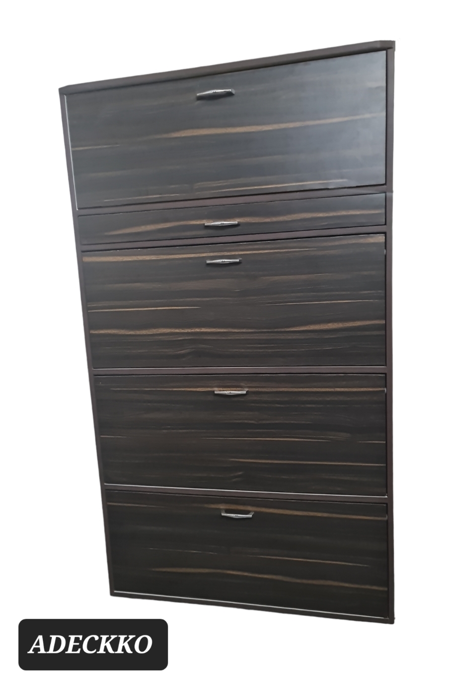 Keep your footwear well organized in the Adeckko Shoe Cabinet. This shoe rack is multi-functional and also has drawers to store other items. It has an elegant design that can enhance any decor. Made of High quality plywood with premium laminate finish. Material - PLYWOOD + LAMINATE Dimensions - Height : 60 inches Width. : 36 inches Depth. : 13 inches. Pre-assembled - NO Assembly Required. For customization contact us at 9999320028