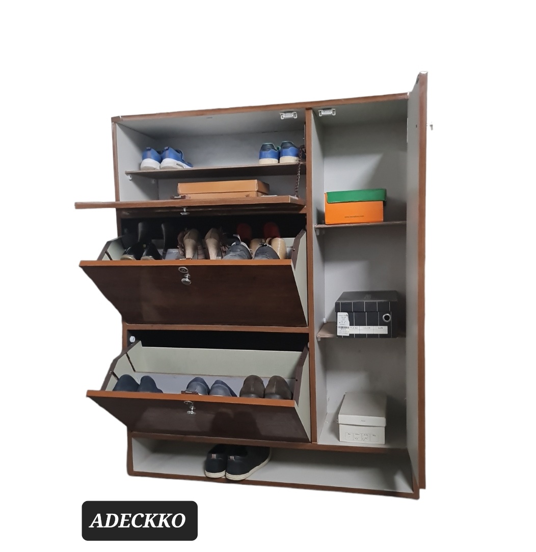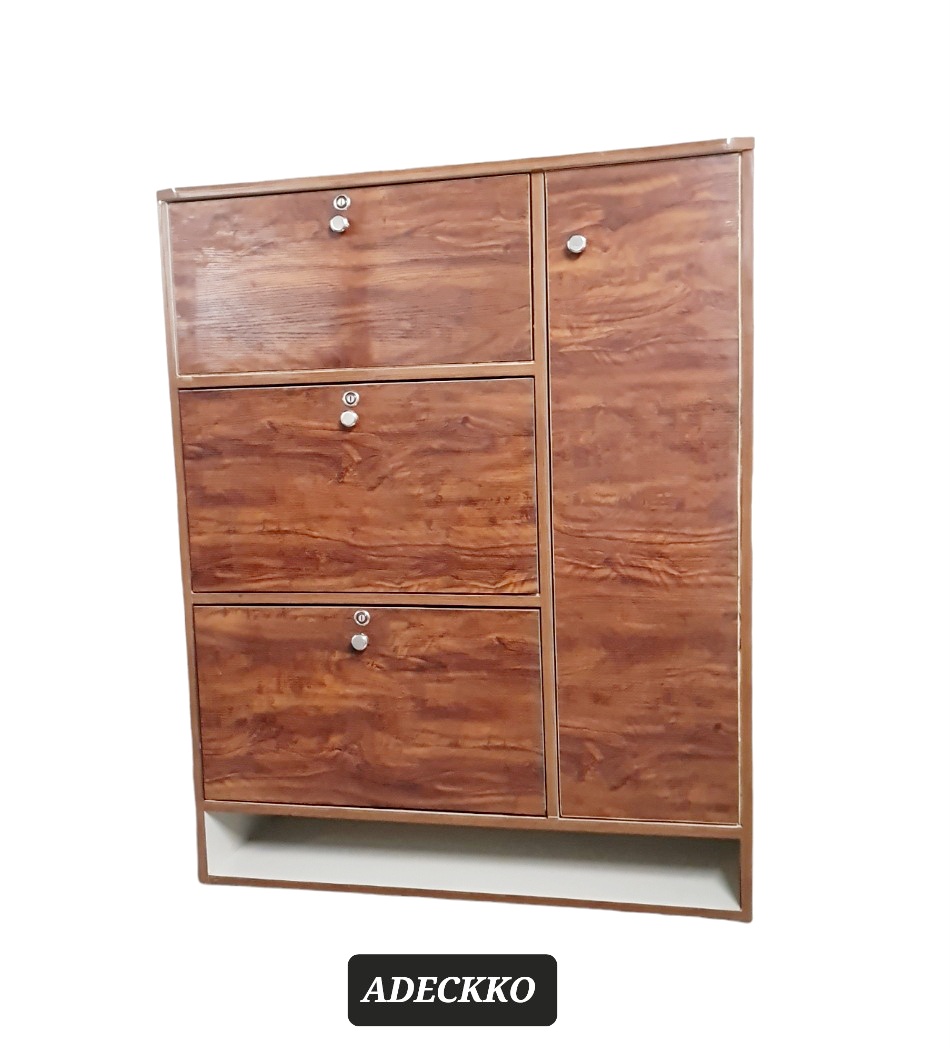 If you find yourself stepping on your shoes more often than you’re stepping into them, it’s time for a storage solution! This cabinet, sized to fit neatly into the entryway or mudroom, is a perfect pick. Almost 50 pair can easily accommodate. Its made of Plywood with premium Laminate Teak Finish. It comes up with Three Rotating Compartments with one side door for storage & open space at bottom. Material - PLYWOOD + LAMINATE Dimensions - Height 52 inches Width 48 inches Depth 13 inches. Pre-assembled - NO Assembly Required. For customization contact 9999320028