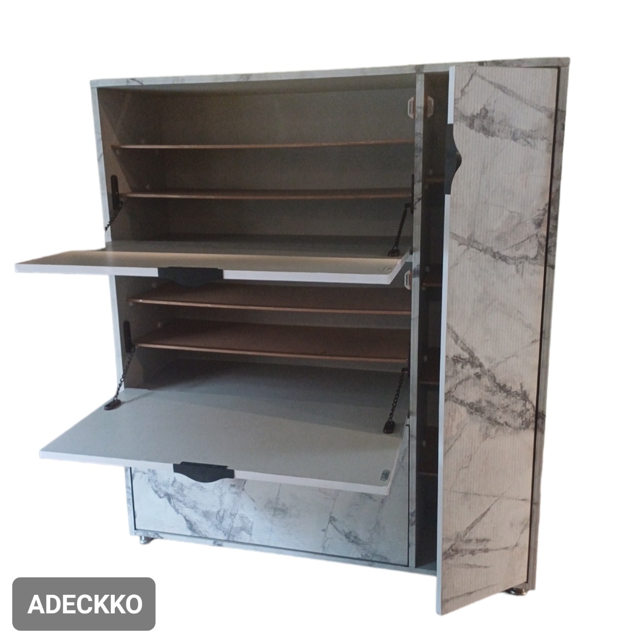 If you find yourself stepping on your shoes more often than you’re stepping into them, it’s time for a storage solution! This cabinet, sized to fit neatly into the entryway or mudroom, is a perfect pick. Almost 50 pair can easily accommodate. Its made of Plywood with premium Laminate Finish. It comes up with Two Pull Out Compartments with one rotating compartment at bottom & There is a single door at sides with detachable shelves with one storage drawer. Material - PLYWOOD + LAMINATE Dimensions - Height : 54 inches Width : 48 inches Depth : 15 inches Pre-assembled - NO Assembly Required. For customization contact 9999320028.