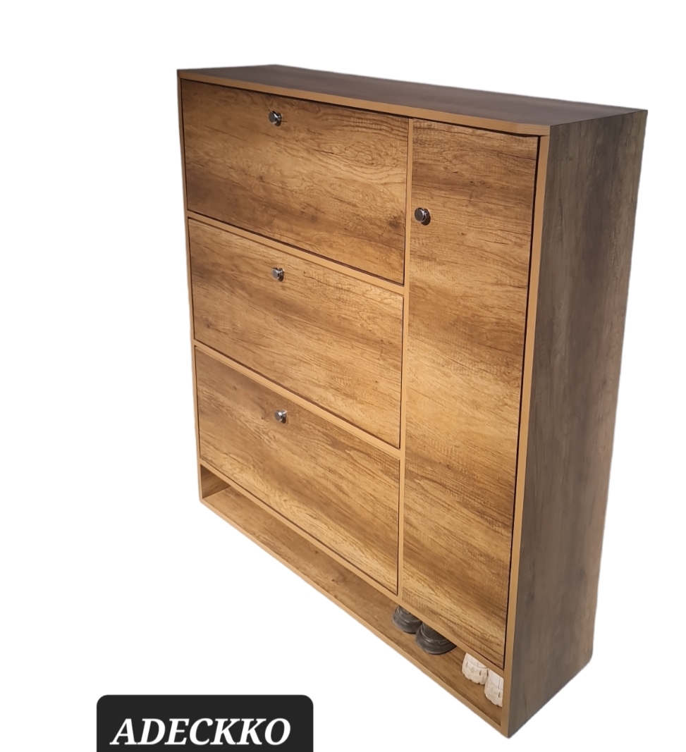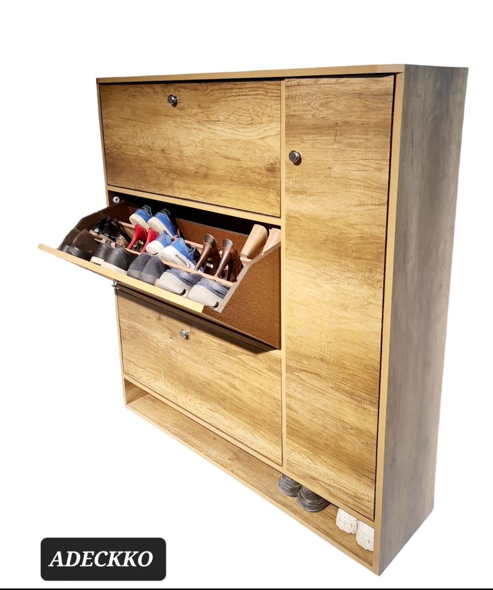 Organize your heels, sandals, sneakers, trainers, boots, work shoes and more with this cabinet. It will make finding your favourite pair of heels so much easier as well. Wooden Shoe Rack Includes 3 rotating compartments, spacious side door and open space at bottom. Made of High Quality Heavy Plywood with Premium Laminate Finish. product can accomodate 45-50 pair shoes. Material - PLYWOOD + LAMINATE Dimensions - Height : 54 inches Width : 48 inches Depth : 13 inches. Pre-assembled - NO Assembly Required. For customization contact us at 9999320028