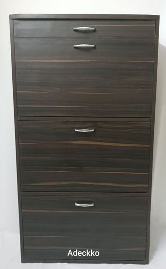 Organize your heels, sandals, sneakers, trainers, boots, work shoes and more with this cabinet. It will make finding your favourite pair of heels so much easier as well.Wooden Shoe Rack Includes 3 layers with 3 racks and one drawer.Each layer has 3 shoe compartments with 2 Rows With an Extra Drawer.Max storage 18 Pair of Shoes.Made of High Quality Heavy Plywood with Premium Laminate Finish. Material - PLYWOOD + LAMINATE Dimensions - Height : 54 inches Width : 27 inches Depth : 10 inches Pre-assembled - NO Assembly Required. For customization contact us at 9999320028