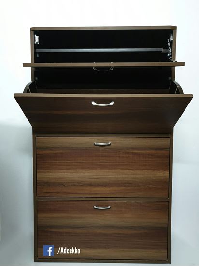 Keep your footwear well organized in the Adeckko Shoe Cabinet. This shoe rack is multi-functional . It has an elegant design that can enhance any decor. Made of High quality plywood with premium laminate finish. Material - PLYWOOD + LAMINATE Dimensions - Height : 60 inches Width. : 36 inches Depth. : 13 inches Pre-assembled - NO Assembly Required. For customization contact us at 9999320028