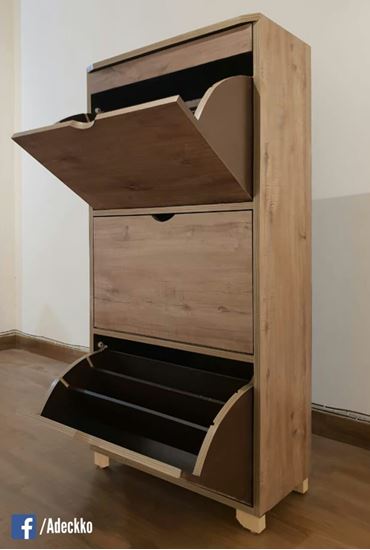 Organise your heels, sandals, sneakers, trainers, boots, work shoes and more with this cabinet. It will make finding your favourite pair of heels so much easier as well. Wooden Shoe Rack Includes 3 layers with 3 racks and one drawer. Each layer has 3 shoe racks with 3 slots on both sides and 2 movable panel, You can adjust the panel according to your needs. Max storage 24 Pair of Shoes. Made of High Quality Heavy Plywood with Premium Laminate Finish. Material - PLYWOOD + LAMINATE Dimensions - Height : 50 inches Width : 24 inches Depth : 13 inches. Pre-assembled - NO Assembly Required. For customization contact us at 9999320028
