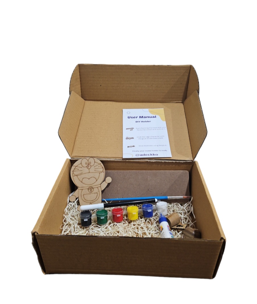 Adeckko DIY Doremon Medal Holder Celebrate your achievements in style with the Adeckko DIY Doremon Medal Holder. This innovative and fun kit allows you to create a personalized medal holder that showcases your hard-earned medals while adding a playful astronaut-themed touch to your space. Kit Includes: Doremon -Themed Medal Holder Pieces : Easy-to-assemble blocks designed to form a sturdy and eye-catching medal holder. Coloring Markers : A set of vibrant, high-quality markers to customize your medal holder. Hooks and Hardware : Durable hooks to hang your medals and all necessary hardware for assembly. Instruction Sheet : Step-by-step instructions to guide you through the assembly and coloring process. Features: Personalization : Customize your medal holder with your favorite colors and designs using the included markers and stickers. Durable Construction : Made from high-quality MDF, materials to ensure your medal holder is sturdy and long-lasting. Display Your Achievements : Proudly showcase your medals in an organized and visually appealing way. Perfect Gift : Ideal for athletes, students, and anyone who loves, space, astronaut and wants a unique way to display their medals. Easy to Assemble : Designed for simple and quick assembly, making it a great project for all ages. Dimensions: Medal Holder : 7 x 3.5 inches (assembled) Doremon Cutout - 4 inches Celebrate your victories and add a touch of creativity to your room with the Adeckko DIY Doremon Medal Holder. This kit provides the perfect blend of fun and function, making it an excellent addition to any home. Get yours today and start showcasing your achievements in style! For Customisation and Bulk Orders contact 9999320028