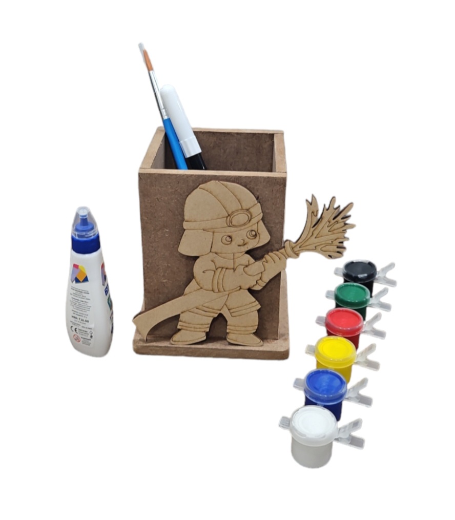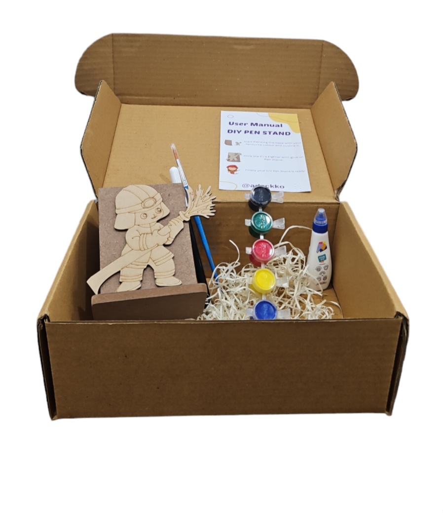 Adeckko DIY Pen Stand Fire Fighter Theme Coloring Kit. Unleash your creativity and organizational skills with the Adeckko DIY Pen Stand Fire Fighter Theme Coloring Kit. This unique and fun kit combines the joy of building with the therapeutic benefits of coloring, creating a personalized and functional pen stand that reflects your style. Kit Includes: Fire Fighter-Themed Pen Stand & Cut Out : Pre Assembeld pen stand & Lego Cutout. Coloring Markers: A set of vibrant, high-quality markers for coloring the pen stand pieces, allowing you to customize your creation. Instruction Sheet : Step-by-step instructions to guide. Customize your pen stand with your favorite colors and designs. Durable Materials : Made from high-quality MDF, durable materials to ensure your pen stand lasts. Gift: Perfect for kids, students, artists, and anyone who loves DIY projects and Lego-themed items. Compact Design: Ideal for desks, study areas, or any workspace that needs a touch of personalization and organization.Create a one-of-a-kind pen stand that not only keeps your pens, pencils, and markers in order but also adds a playful and colorful touch to your workspace. The Adeckko DIY Pen Stand Fire Fighter Theme Coloring Kit is the perfect blend of fun and function. Get yours today and start building your creativity! For Customisation contact 9999320028