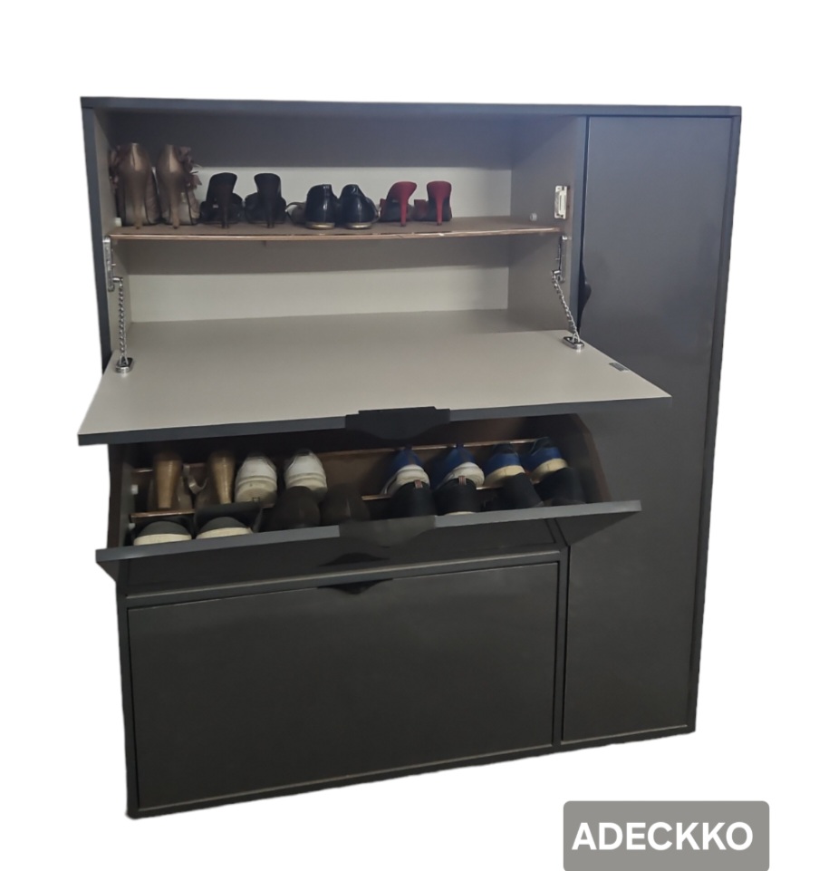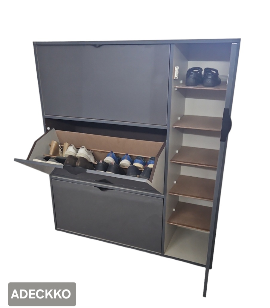 If you find yourself stepping on your shoes more often than you’re stepping into them, it’s time for a storage solution! This cabinet, sized to fit neatly into the entryway or mudroom, is a perfect pick. Almost 50 pair can easily accommodate. Its made of Plywood with premium Laminate Finish. It comes up with Two Pull Out Compartments with one rotating compartment at bottom & There is a single door at sides with detachable shelves with one storage drawer. Material - PLYWOOD + LAMINATE Dimensions - Height : 54 inches Width : 48 inches Depth : 15 inches Pre-assembled - NO Assembly Required. For customization contact 9999320028.