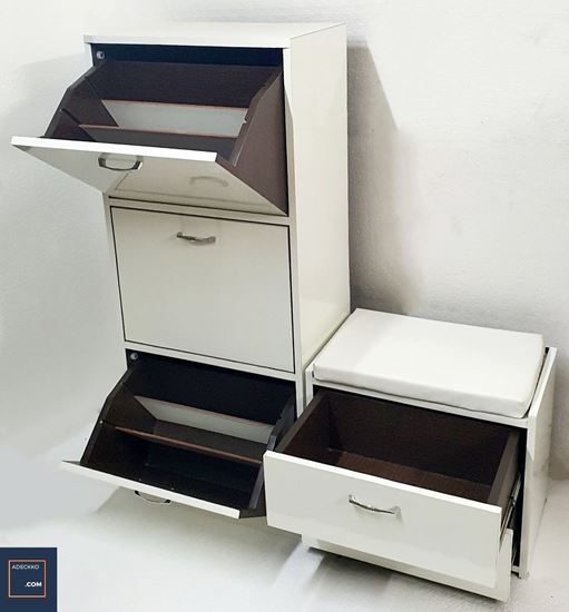 Organize your heels, sandals, sneakers, trainers, boots, work shoes and more with this cabinet. It will make finding your favourite pair of heels so much easier as well.Wooden Shoe Rack Includes 3 compartments and a bench having 2 Drawers. Made of High Quality Heavy Plywood with Premium Laminate Finish. Material - PLYWOOD + LAMINATE Dimensions - Height : 51 Inches Width : 20 Inches Depth : 13 Inches. Bench : Height 20 Inches Width 22 Inches Depth 13 inches. Pre-assembled - NO Assembly Required. For customization contact us at 9999320028