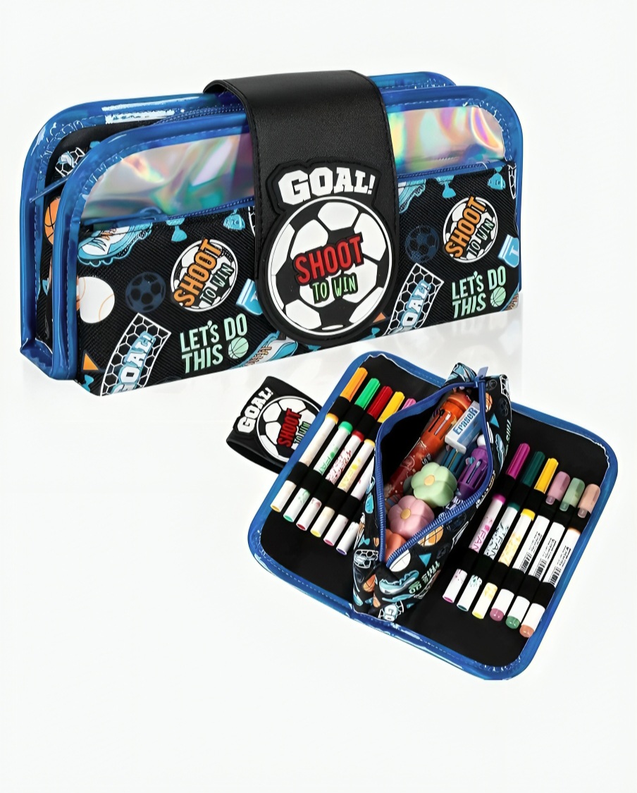 Kids Football Character Pencil Pouch/Pencil Box/Geometry Box/Stationary Box. Perfect Pencil pouch / Pencil box / Geometry box for kids with lot of space to keep all stationary items like pencil, pen, sketch pens, colours, marker, scissors etc in one single pouch. It contains 3 different compartments with Zipper closure. For bulk orders contact 9999320028
