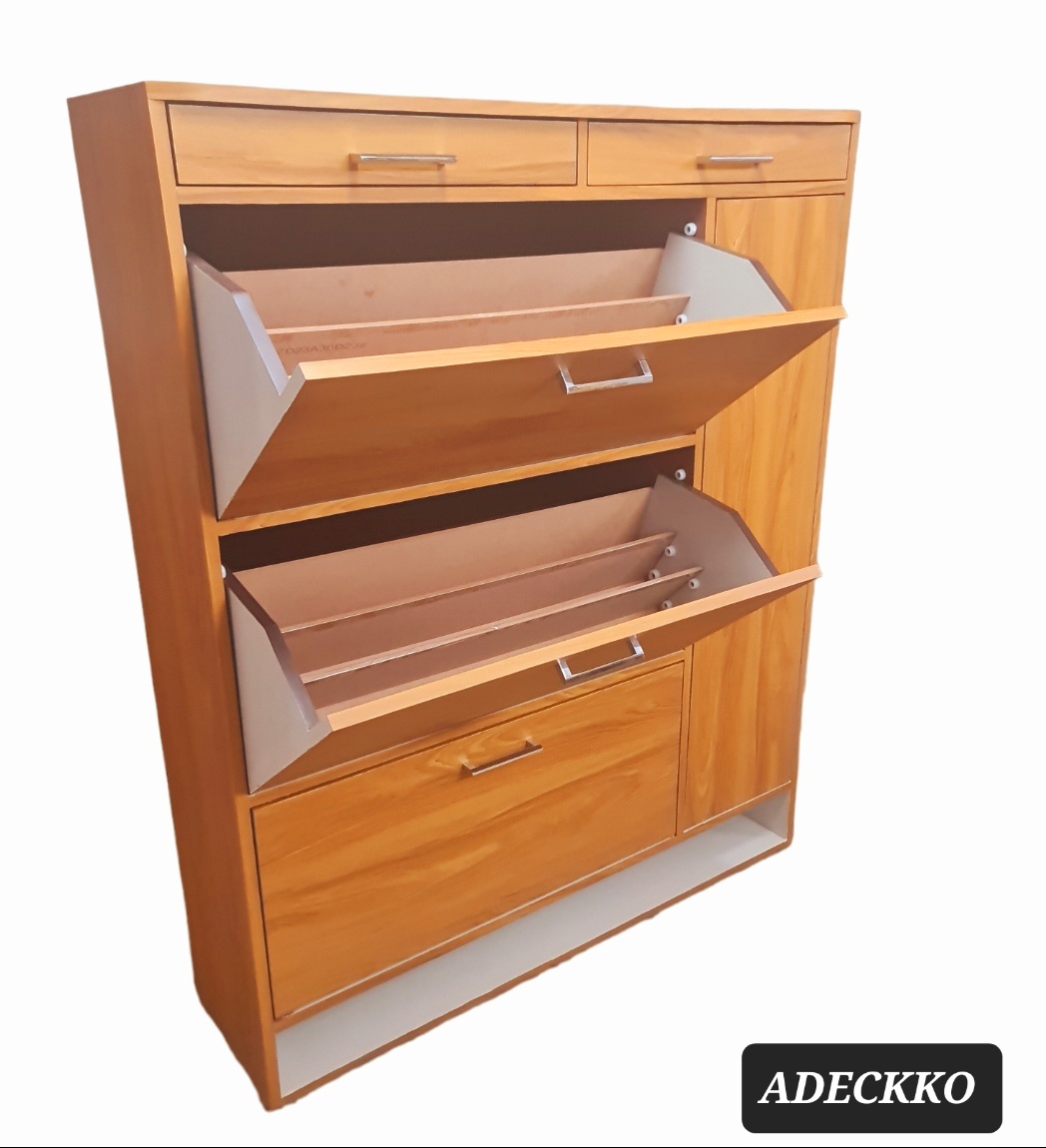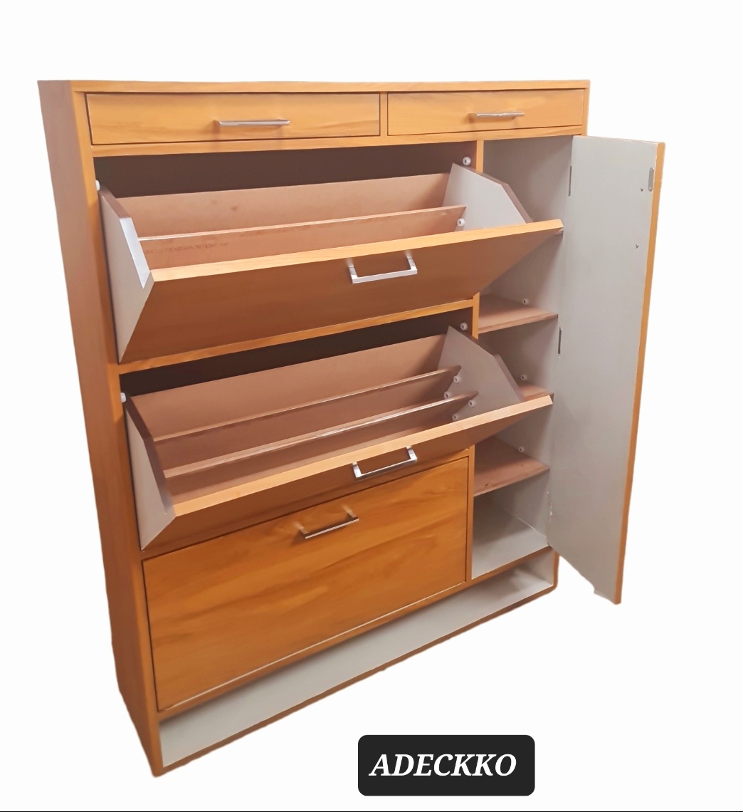 If you find yourself stepping on your shoes more often than you’re stepping into them, it’s time for a storage solution! This cabinet, sized to fit neatly into the entryway or mudroom, is a perfect pick. Almost 50 pair can easily accommodate. Its made of Plywood with premium Laminate Finish. It comes up with Two Rotating Compartments with one Pullout shelf at top & There is a single door at sides with detachable shelves with two storage drawers. Material - PLYWOOD + LAMINATE Dimensions - Height 51 inches Width 48 inches Depth 13 inches. Pre-assembled - NO Assembly Required. For customization contact 9999320028