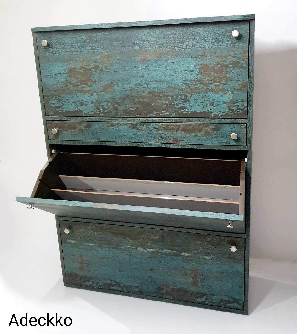 Organize your heels, sandals, sneakers, trainers, boots, work shoes and more with this cabinet. It will make finding your favourite pair of heels so much easier as well.Wooden Shoe Rack Includes 3 layers with 3 racks and one drawer.Each layer has 3 shoe racks with 3 slots on both sides and 2 movable panel, You can adjust the panel according to your needs.Max storage 40 Pair of Shoes.Made of High Quality Heavy Plywood with Premium Laminate Finish. Material : PLYWOOD + LAMINATE Dimensions : Height : 51 inches Width : 36 inches Depth : 13 inches Pre-assembled - NO Assembly Required. For customization contact us at 9999320028