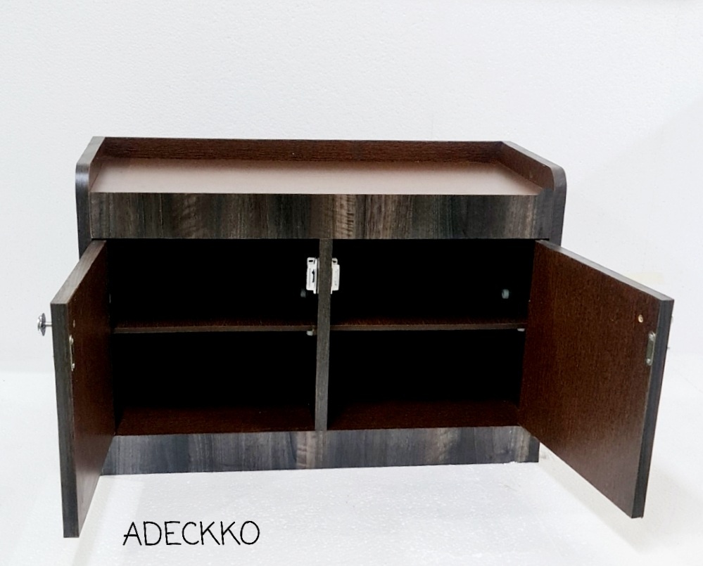 Shop for entryway shoe rack bench by Adeckko Double Door Shoe Rack with Black Leatherette Upholstery Sitting made of durable Plywood Wood. Will be sent in assembled condition. Made of High Quality Plywood with Premium Laminate finish. Material - PLYWOOD + LAMINATE Dimensions - Height 20 inches Width 30 inches Depth 13 inches Pre-assembled - NO Assembly Required. *Product comes without cushion For customization of this Product, Get in touch at 9999320028