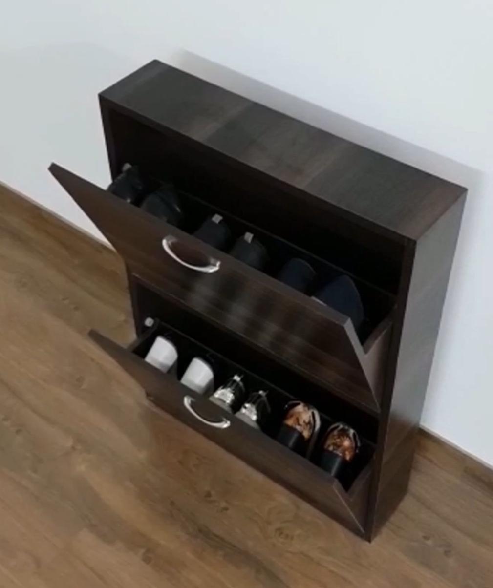 Sleek shoe rack designed by Adeckko. The Sleek shoe rack features two compartments & can be wall mounted . Made of High quality plywood with premium laminate finish. Material - PLYWOOD + LAMINATE Dimensions : Height : 34 inches Width. : 27 inches Depth. : 6 inches Pre-assembled - NO Assembly Required. For customization contact us at 9999320028