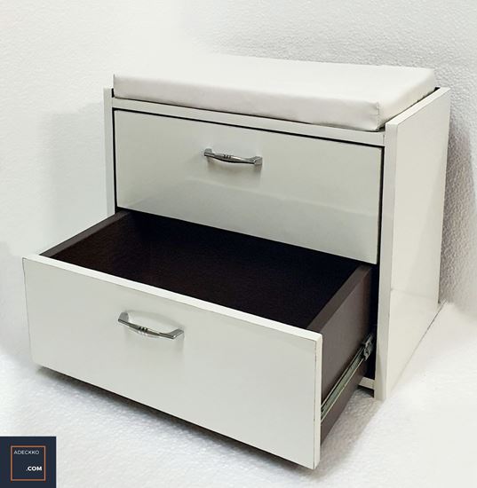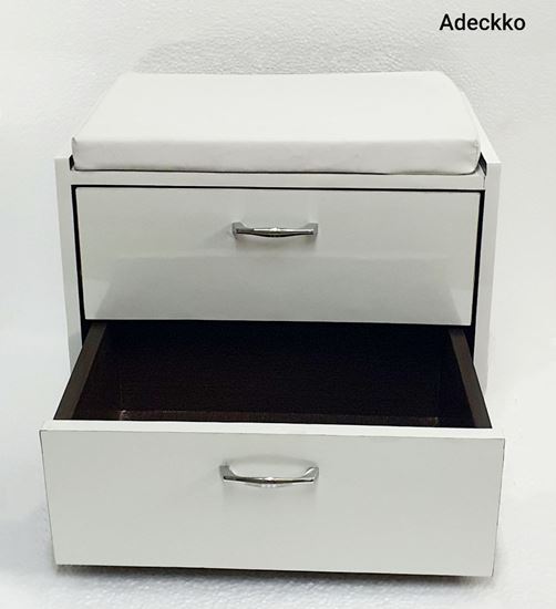 Featuring a clean-lined, laminated wood frame with two drawers, this bench is ideal for storing utilities. Material - PLYWOOD + LAMINATE Dimensions - Height 20 inches Width 22 Inches Depth 13 Inches. Pre-assembled - NO Assembly Required. For customization contact 9999320028