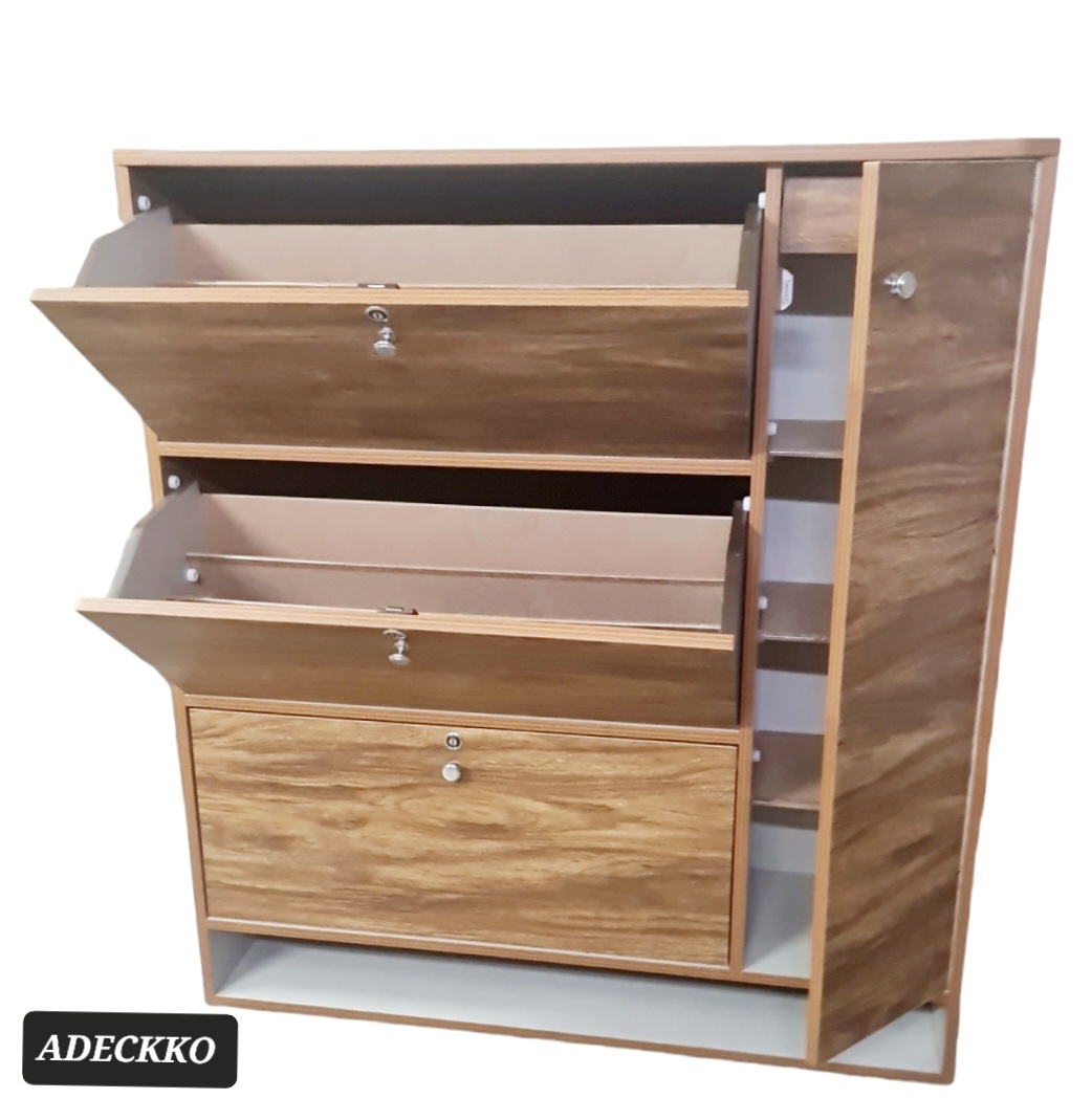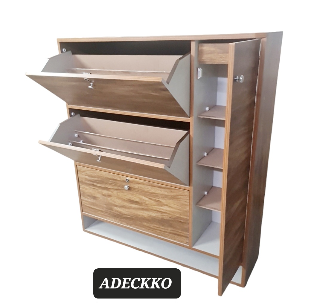 Organize your heels, sandals, sneakers, trainers, boots, work shoes and more with this cabinet. It will make finding your favourite pair of heels so much easier as well. Wooden Shoe Rack Includes 3 rotating compartments, spacious side door and open space at bottom. Made of High Quality Heavy Plywood with Premium Laminate Finish. product can accomodate 45-50 pair shoes.