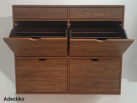Organise your heels, sandals, sneakers, trainers, boots, work shoes and more with this cabinet. It will make finding your favourite pair of heels so much easier as well. Wooden Shoe Rack Includes 4 compartments and two drawers. Made of High Quality Heavy Plywood with Premium Laminate Finish. Material - PLYWOOD + LAMINATE Dimensions - Height : 40 inches Width : 48 inches Depth : 13 inches. Pre-assembled - NO Assembly Required. For customization contact us at 9999320028